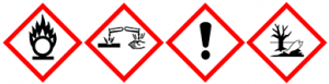 | Kan orsaka brand eller explosion. Starkt oxiderande |