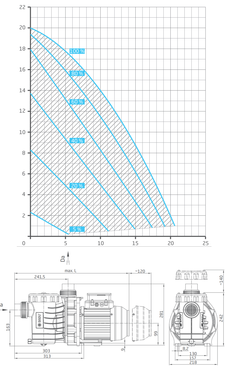| Installationshöjd | Max 2 meter över vattenytan och 3 meter under. | ||