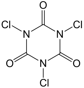 Jo det är en molekylär del av den form av klor som historiskt sätt är allra vanligast i utomhus pooler, både som chockklor (engelska: Dichloroisocyanuric acid) och som multiklor (engelska: Trichloroisocyanuric acid).