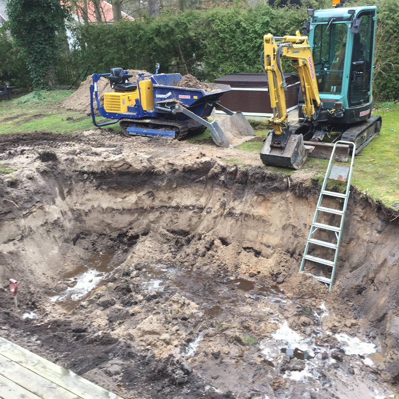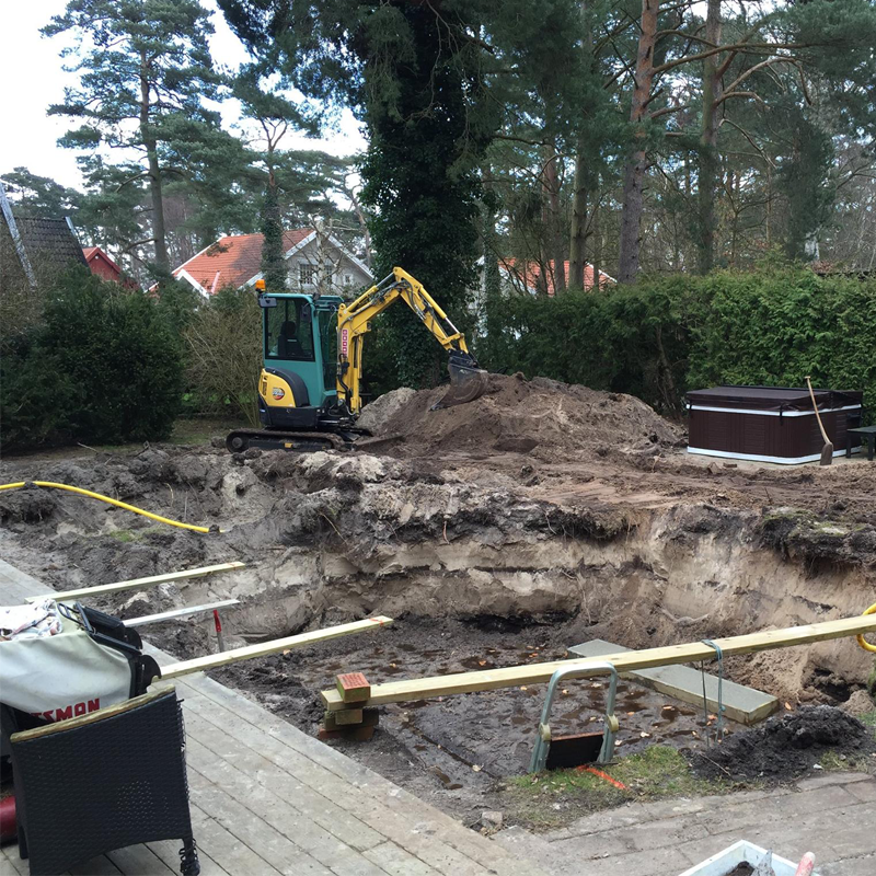 Det är inte så svårt att bygga sin egen pool, men man måste känna sina gränser och ta hjälp om man känner att man inte klarar av ett moment. Här följer bilder och mindre beskrivningar på en av våra senaste kunders poolprojekt. De gjorde allting själva.