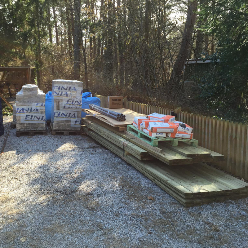 Leverans från den lokala byggfirman, levererades med deras lastbil med kran vilket gjorde hela processen enklare för kunden.