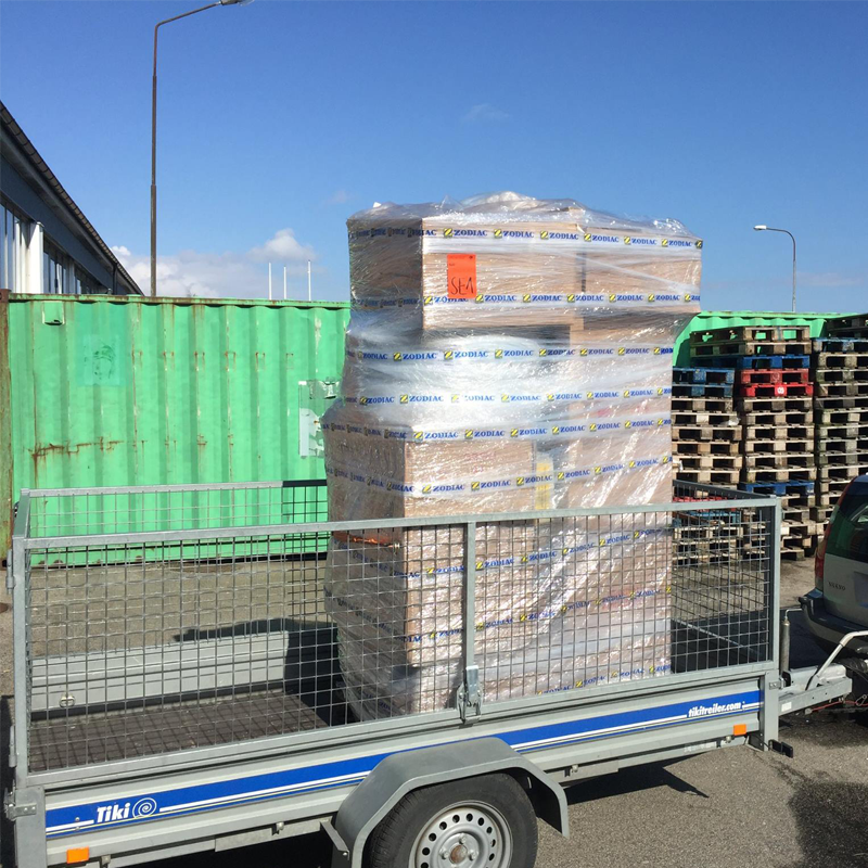 En hel pool på en pall! Hämtades direkt på Poolklubbens lager med ett hyrt släp. Möjligt eftersom kunden bodde i Skåne.