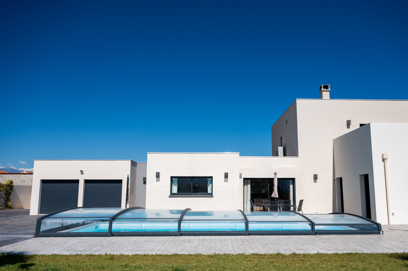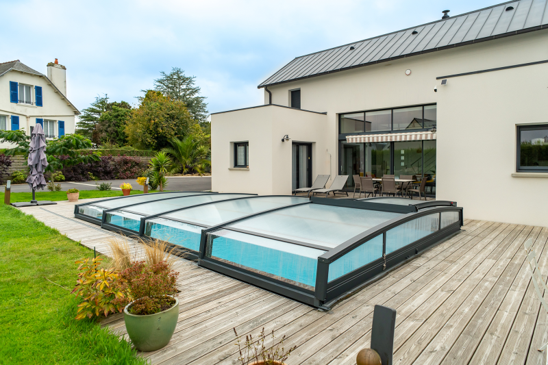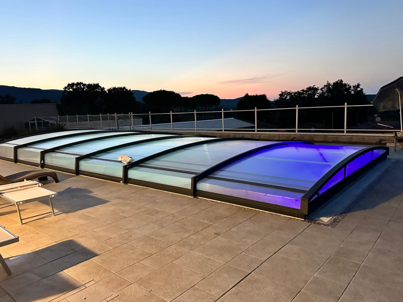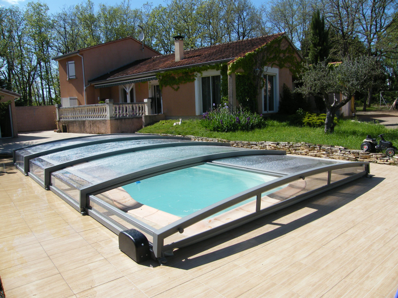 När vi för ett antal år sedan började titta på denna franska tillverkaren så föll vi omedelbart för deras supersnygga design och deras kvalitetstänk. Detaljer som att taken löper på stora kullagrade gummihjul, "enlist" design, hög kvalité på alla ingående komponenter, levererade färdigmonterade och inte i en "påse" typ - dessutom alla reservdelar upplagda på ett riktigt seriöst sätt! Då tänkte vi, detta kan vi ju jobba med! Men problemet var då att de ville ha över 200.000.- för LowProfile modellen, till en 4x8 pool! Sen var det ju det där med vattnet. . . (mer om vattnet nedan).