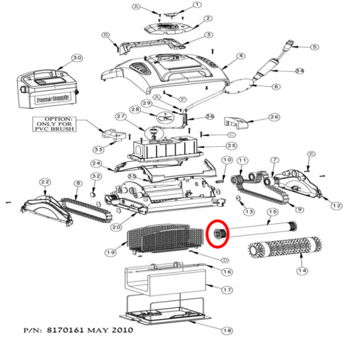 Den håller borstarna fram och bak på plats och monteras platsen är rödmarkerad nedan för den är så liten att den inte ens finns med på sprängskissen om det inte är nummer 17 de menar.